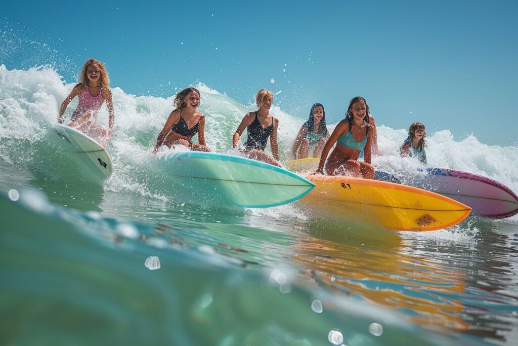 Le surf est non seulement un sport individuel mais peut également être pratiqué en groupe, offrant ainsi une expérience ludique et enrichissante à partager en famille ou entre amis.